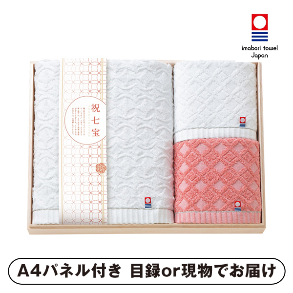| 内容 | バスタオル(約400×1100mm)・フェイスタオル(約280×750mm)・ウォッシュタオル(約280×300mm)×各1 A4パネル×1 |