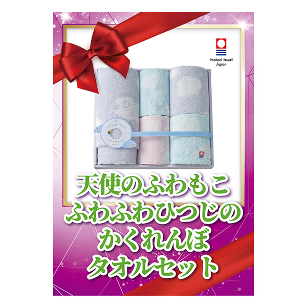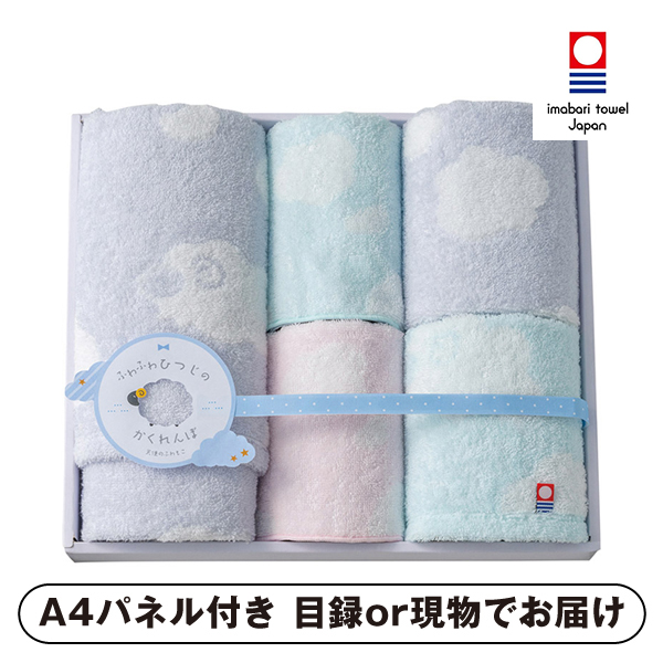 | 内容 | フェイスタオル(約340×750mm)×1、ウォッシュタオル(約340×350mm)・タオルハンカチ(約220×220mm)×各2 A4パネル×1 |