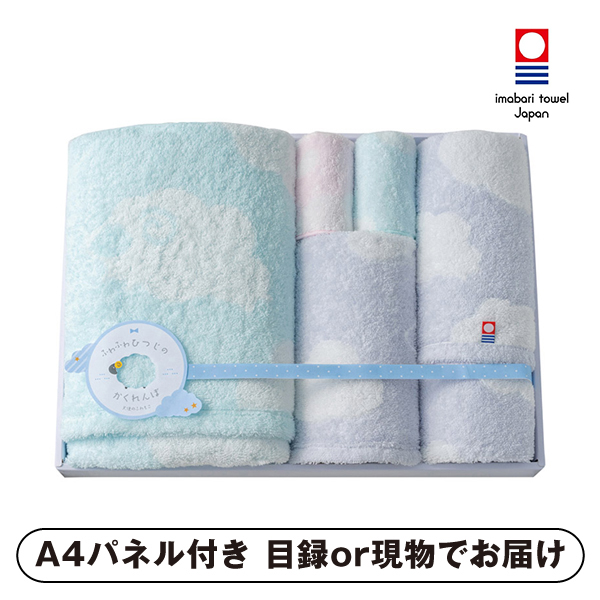 | 内容 | バスタオル(約600×1200mm)・フェイスタオル(約340×750mm)・ウォッシュタオル(約340×350mm)×各1、タオルハンカチ(約220×220mm)×2 A4パネル×1 |