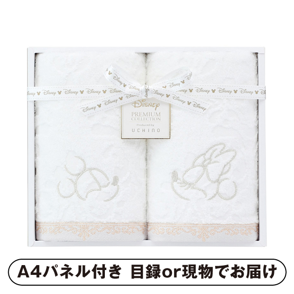 気品あるミッキーとミニーのラメ刺しゅうを施したフェイスタオル2枚セット。華やかでエレガントなデザインは日常に特別感を添え、柔らかい肌触りと高い吸水性で実用性も抜群。大切な方への贈りものとして喜ばれる上質なタオルギフトです。
