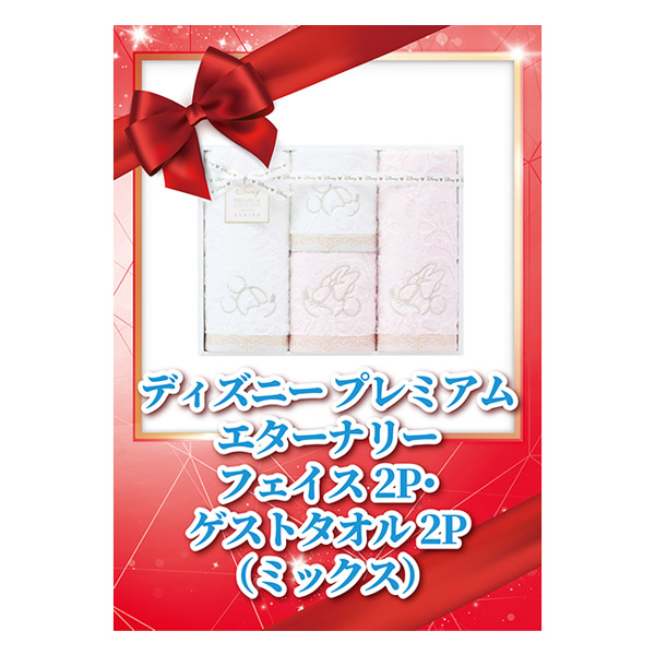 華やかなミッキーとミニーのラメ刺しゅう入りフェイスタオル2枚とゲストタオル2枚のセット。上品でエレガントなデザインが日常に特別感を添え、大切な方への贈りものとしても喜ばれる、実用性とデザイン性を兼ね備えたギフトタオルです。