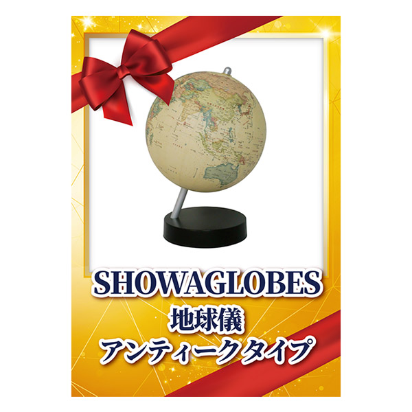 アンティークタイプの卓上型地球儀です。縮尺1億分の1の球体を自転軸1本で支持するシンプルな地球儀です。日本地図付。