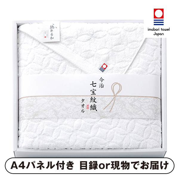 日本古来の縁起柄「七宝」をモチーフに、今治自慢の紋織技術で織り上げたバスタオル。伝統文様が美しく映え、ふんわりとした肌ざわりで日常使いから贈り物まで幅広く活躍します。