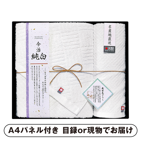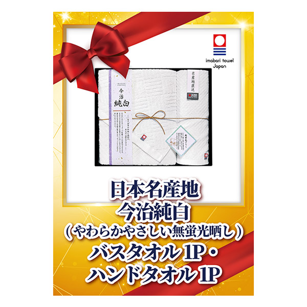 日本名産地 今治純白(やわらかやさしい無蛍光晒し) バスタオル1P・ハンドタオル1P【パネル・目録付】|景品ならPIARY(ピアリー)