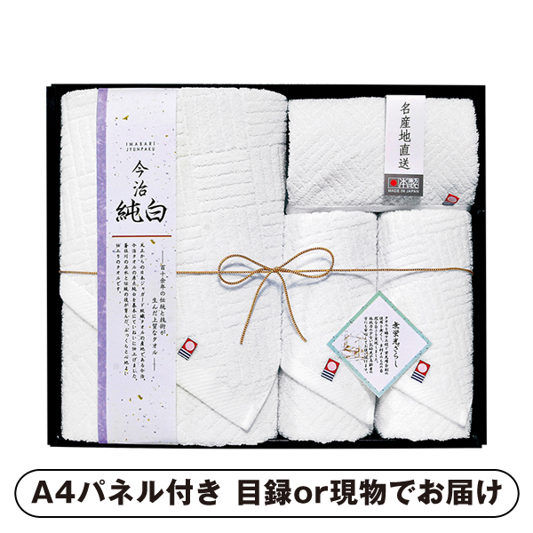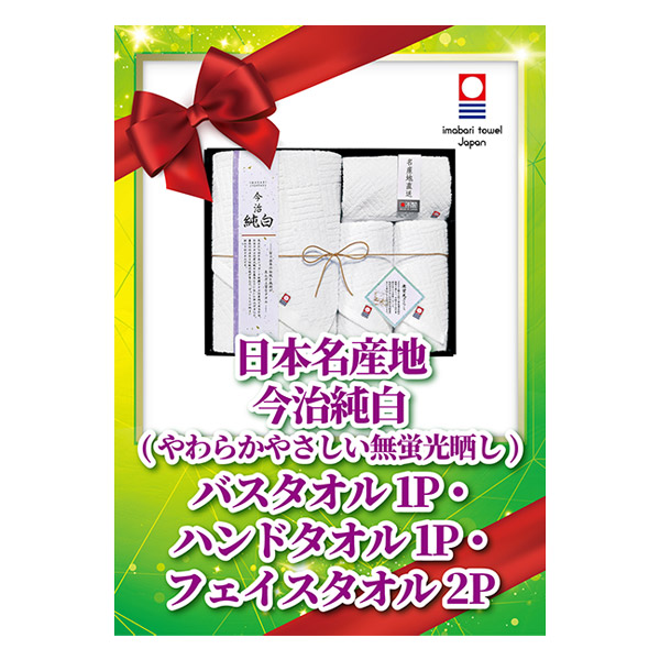 日本名産地 今治純白(やわらかやさしい無蛍光晒し) バスタオル1P・ハンドタオル1P・フェイスタオル2P【パネル・目録付】|景品ならPIARY(ピアリー)