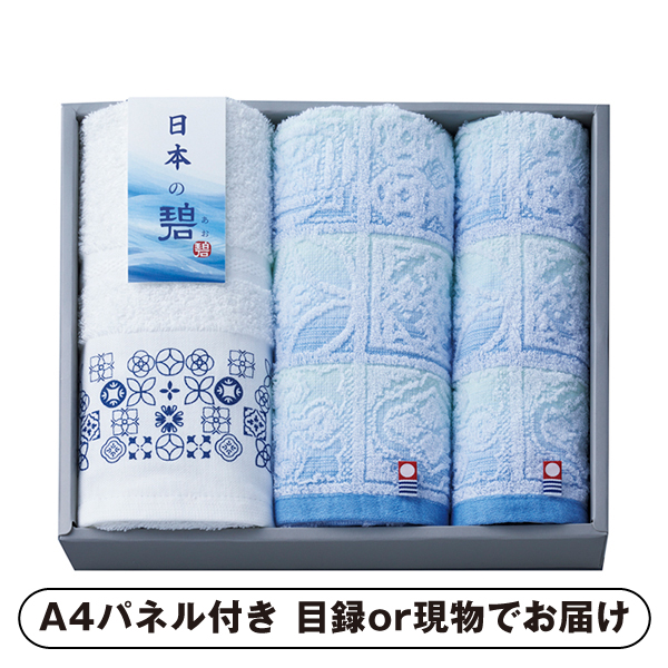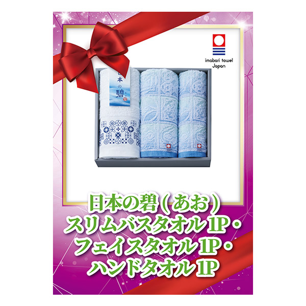 日本の碧(あお) スリムバスタオル1P・フェイスタオル1P・ハンドタオル1P【パネル・目録付】|景品ならPIARY(ピアリー)