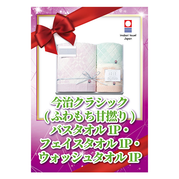 今治クラシック(ふわもち甘撚り) バスタオル1P・フェイスタオル1P・ウォッシュタオル1P【パネル・目録付】|景品ならPIARY(ピアリー)