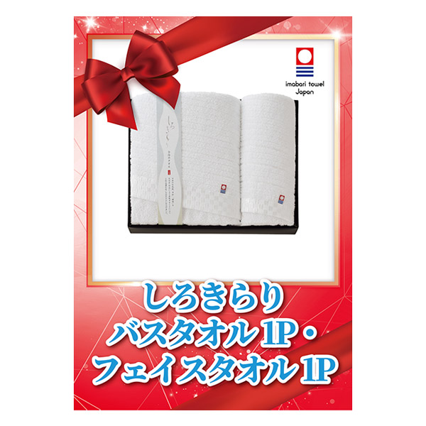 しろきらり バスタオル1P・フェイスタオル1P【パネル・目録付】|景品ならPIARY(ピアリー)