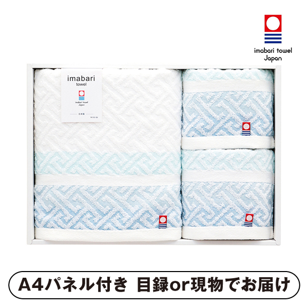 清潔感のある色合いで使い勝手の良いタオル。日本有数のタオル生産地今治の伝統的手法からうみだされた心地の良いタオルです。古くから伝わる小紋柄で織り上げました。どなたにも喜ばれるタオルセットです。