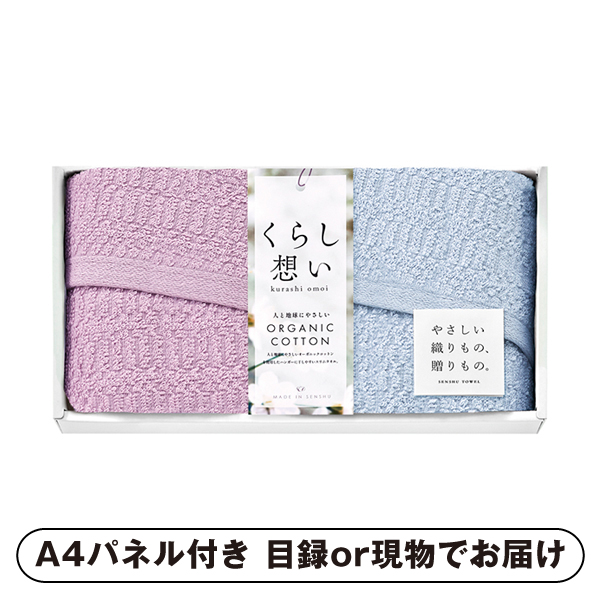 くらし想い オーガニックコットン スリムフェイスタオル2P【パネル・目録付】|景品ならPIARY(ピアリー)