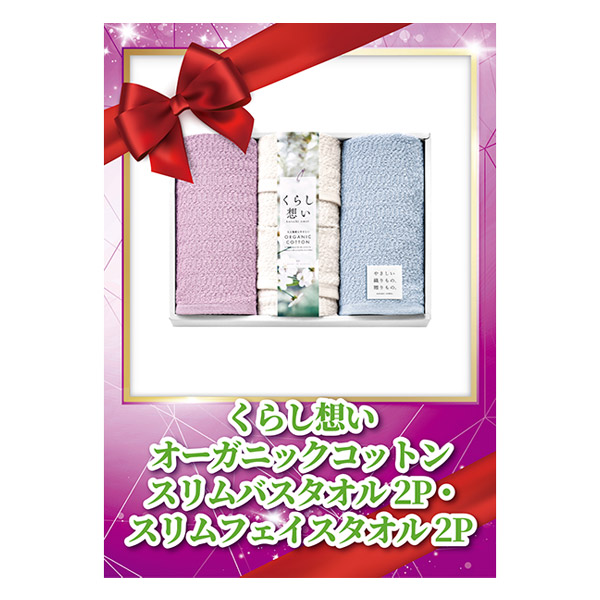 くらし想い オーガニックコットン スリムバスタオル2P・スリムフェイスタオル2P【パネル・目録付】|景品ならPIARY(ピアリー)