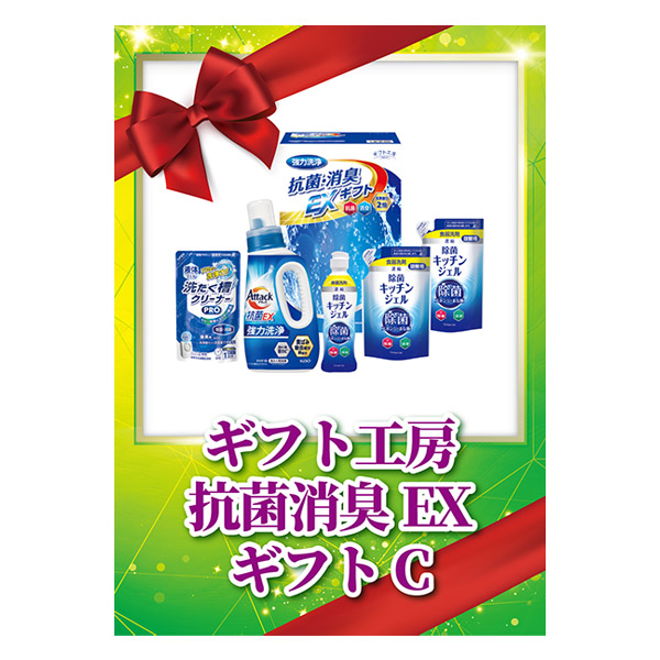 | 内容 | 花王アタック抗菌EX750g・除菌キッチンジェル200ml・液体洗たく槽クリーナーPRO200g×各1、除菌キッチンジェル(詰替)160ml×2 A4パネル×1 |
