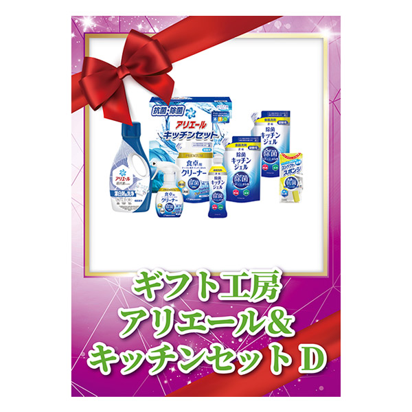 「ギフト工房 アリエール&キッチンセット」は、抗菌・洗浄・消臭力に優れたアリエールと、キッチン用除菌・抗菌アイテムを組み合わせたギフト。衣類も食器も清潔に保ち、快適な毎日をサポートする便利で喜ばれるセットです。
