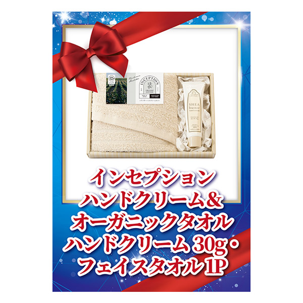 インセプション ハンドクリーム&オーガニックタオル ハンドクリーム30g・フェイスタオル1P【パネル・目録付】|景品ならPIARY(ピアリー)