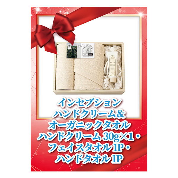 インセプション ハンドクリーム&オーガニックタオル ハンドクリーム30g×1・フェイスタオル1P・ハンドタオル1P【パネル・目録付】|景品ならPIARY(ピアリー)