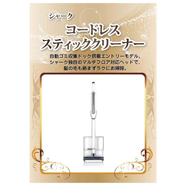自動ゴミ収集ドック搭載エントリーモデル。シャーク独自のマルチフロア対応ヘッドで、髪の毛も絡まずラクにお掃除。