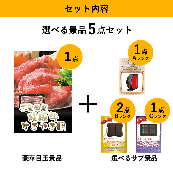 三重県産 松阪牛すきやき 選べる景品5点セット| 結婚式 二次会 忘年会におすすめ!|景品ならPIARY(ピアリー)