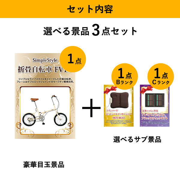 「SimpleStyle 折畳自転車 FV16」をメイン景品とした、メイン景品1点と選べるサブ景品2点を合わせたセット!