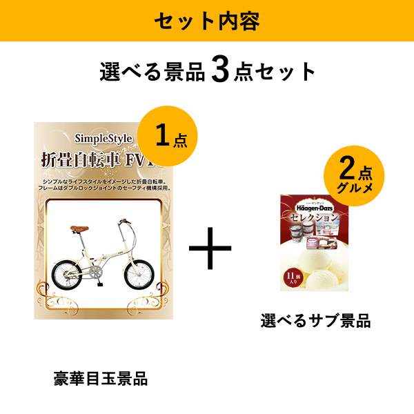 「SimpleStyle 折畳自転車 FV16」をメイン景品とした、メイン景品1点と選べるサブ景品2点を合わせたセット!