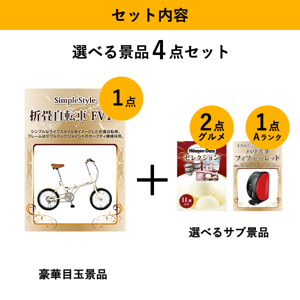 「SimpleStyle 折畳自転車 FV16」をメイン景品とした、メイン景品1点と選べるサブ景品3点を合わせたセット!