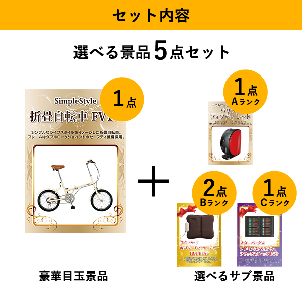 「SimpleStyle 折畳自転車 FV16」をメイン景品とした、メイン景品1点と選べるサブ景品4点を合わせたセット!