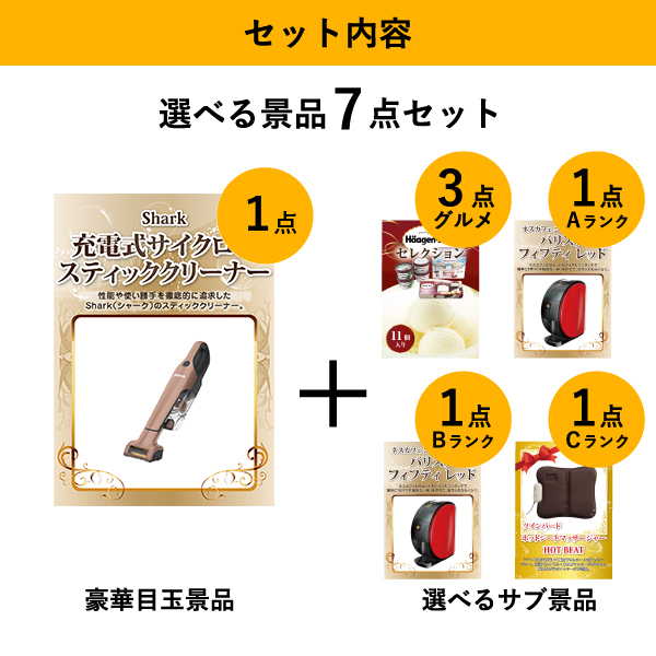 Shark 充電式サイクロンスティッククリーナー 選べる景品7点グルメセット|景品ならPIARY(ピアリー)