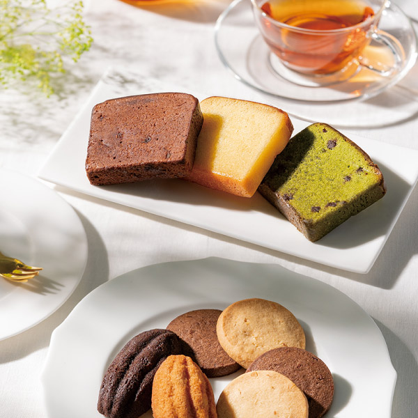 | 内容 | ケーク×5(ショコラ ブラン エ ノワドゥココ 2、ショコラ 2、抹茶 1) カカオフィナンシェ×8 (ショコラ、ジャンドゥーヤ 各4) フールセック×8(ホワイトチョコレート、ダークチョコレート 各4) A4パネル×1 |