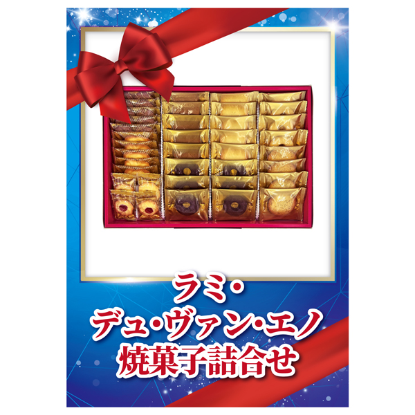 | 内容 | 豆乳リング・アールグレイ・ミニラズリン×各4、ラングドシャ・カフェラングドシャ・珈琲ココナッツ(2個入)・エスリング×各5、ココアリング×6 A4パネル×1 |