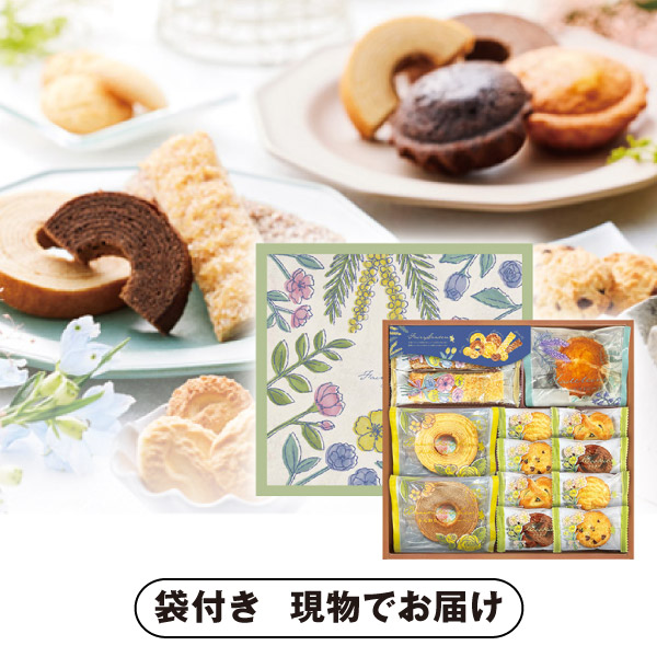 | 内容 | クッキー(ミルク・メープル・ショコラ・チョコチップ)×各2、スティックパイ(メープル・ショコラ)・マドレーヌ(プレーン)・バウムクーヘン(バニラ・ココア)×各1 |