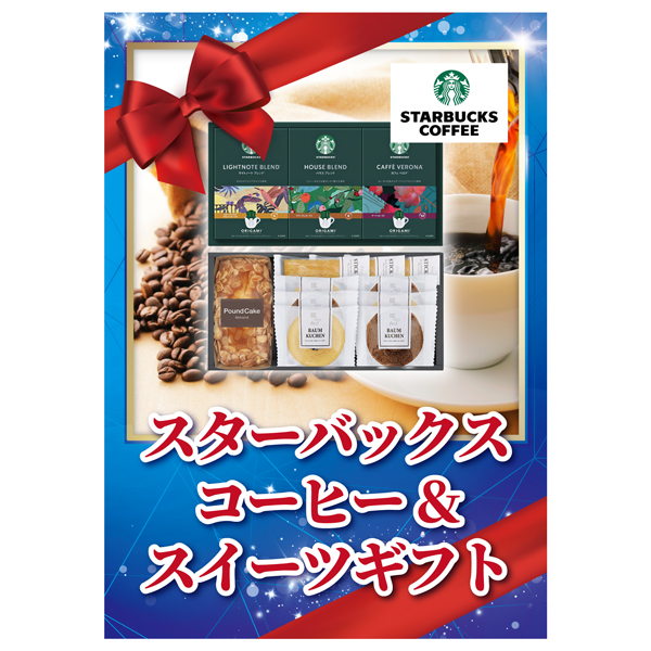 | 内容 | スターバックスオリガミドリップコーヒー(ハウスブレンド・カフェベロナ・ライトノート×各4)・アーモンドパウンドケーキ×各1、バウムクーヘン(ココア・バニラ)・スティックパイ(プレーン)×各3 A4パネル×1 |