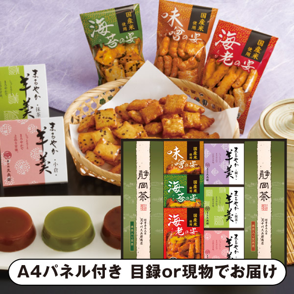 緑茶・あられ・羊かん詰合せB【パネル・目録付】|景品ならPIARY(ピアリー)