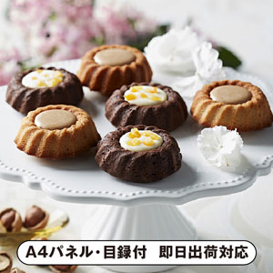 内容 | ヘーゼルナッツケーキ・ビターチョコオレンジケーキ 各4個 計8個 A4パネル×1 |