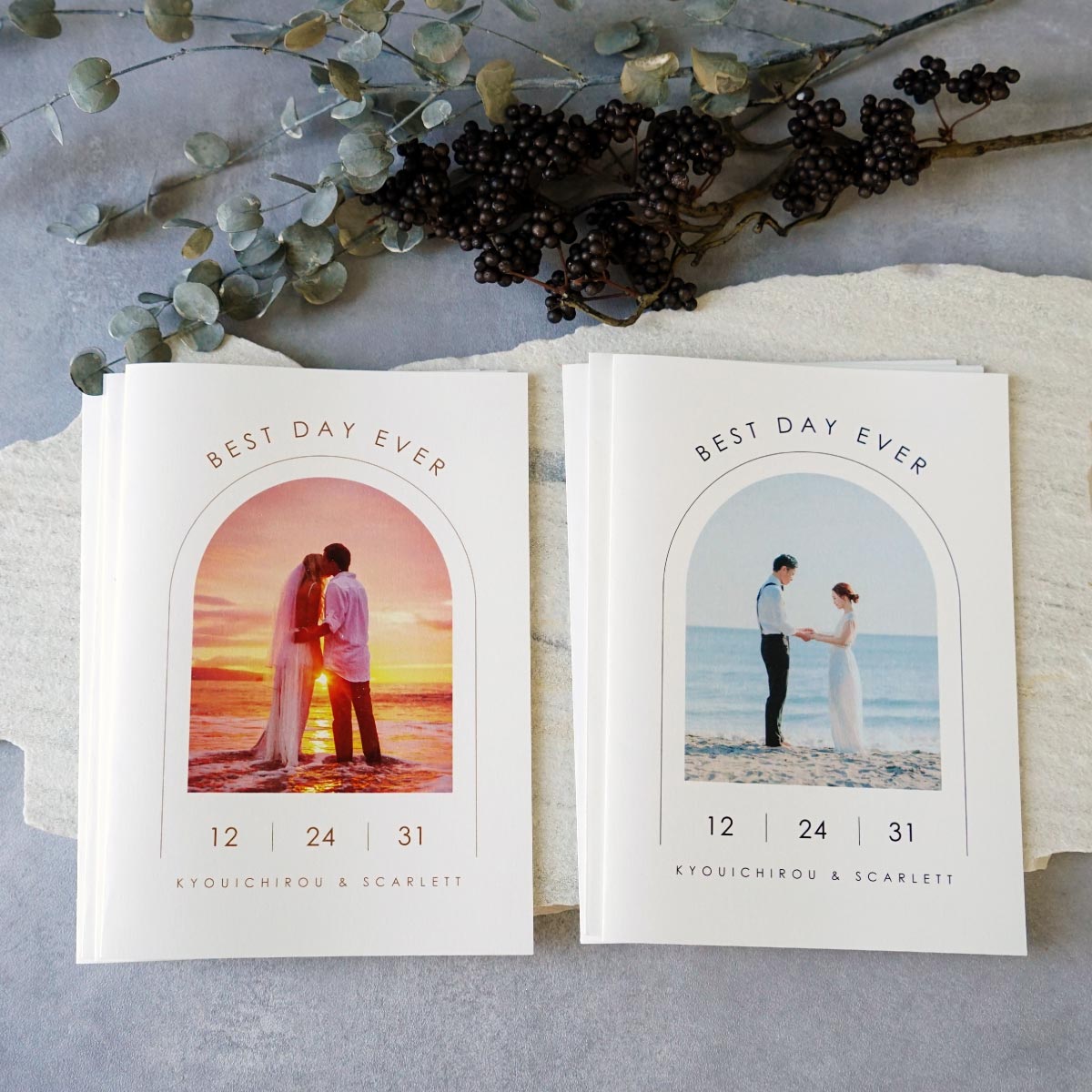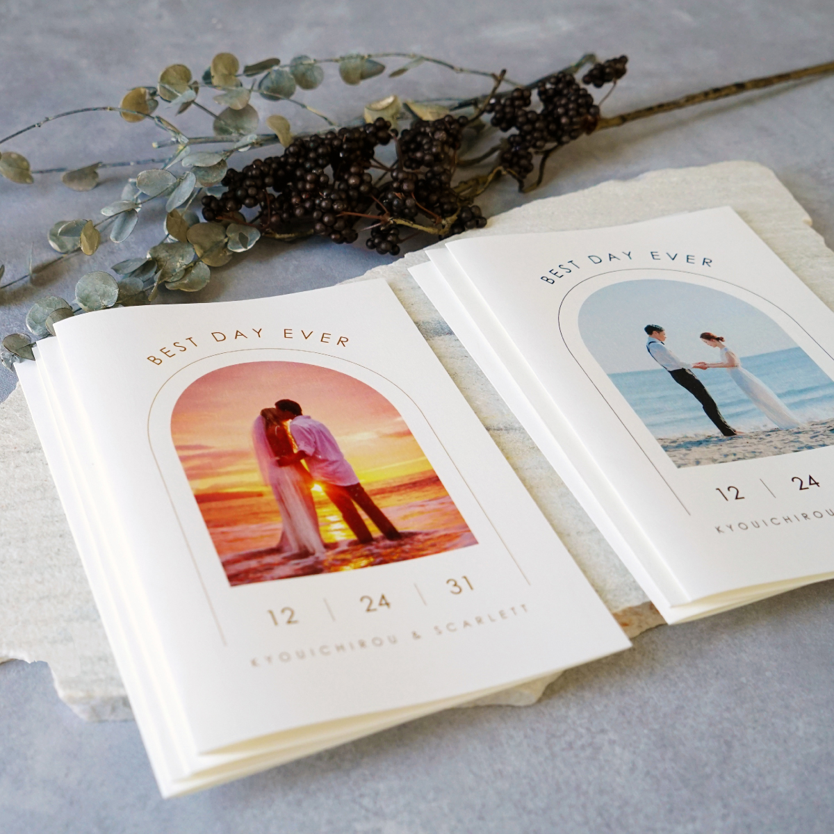 席次表には本日のプログラムや席のご案内を載せて、プロフィールブックにはおふたりのプロフィールをたくさんの写真とともに載せて使い分けるのもオススメです。