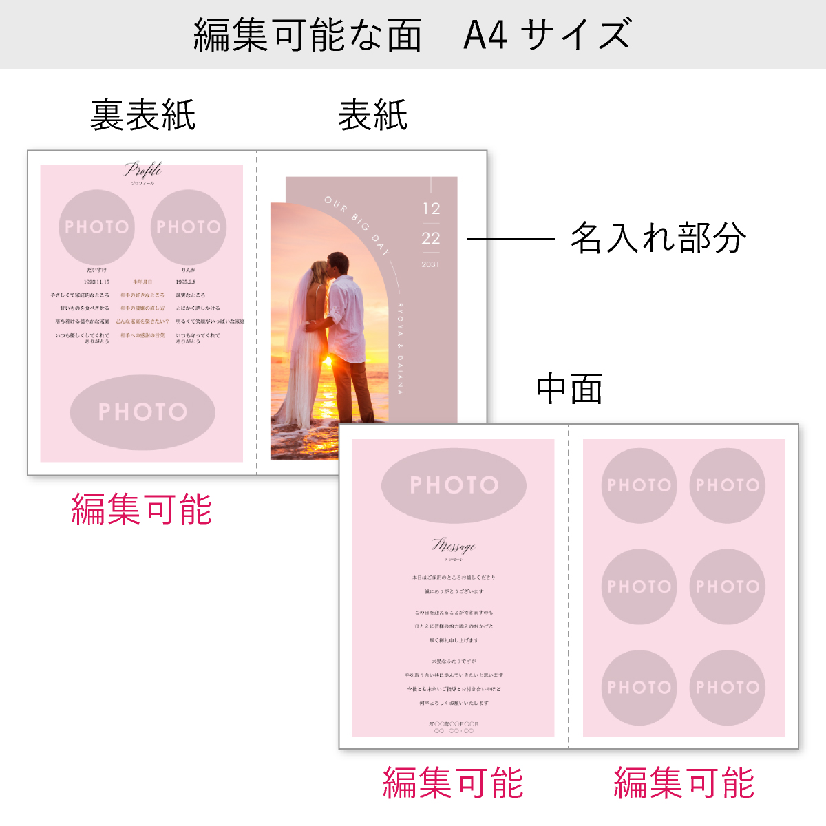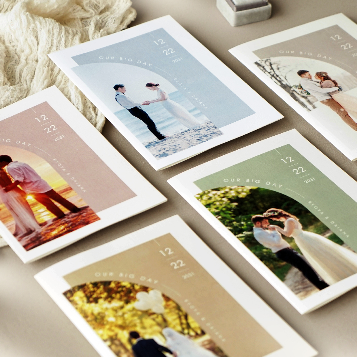 親族のみの挙式用に注文しました! 少ない部数での発行が可能なのと 自分でアレンジしてレイアウトが可能なことがとても嬉しかったです! レイアウト設定の際、 余白を上手く調整が出来なかったのが少し残念でしたが 発送も早く総合的には大満足です!