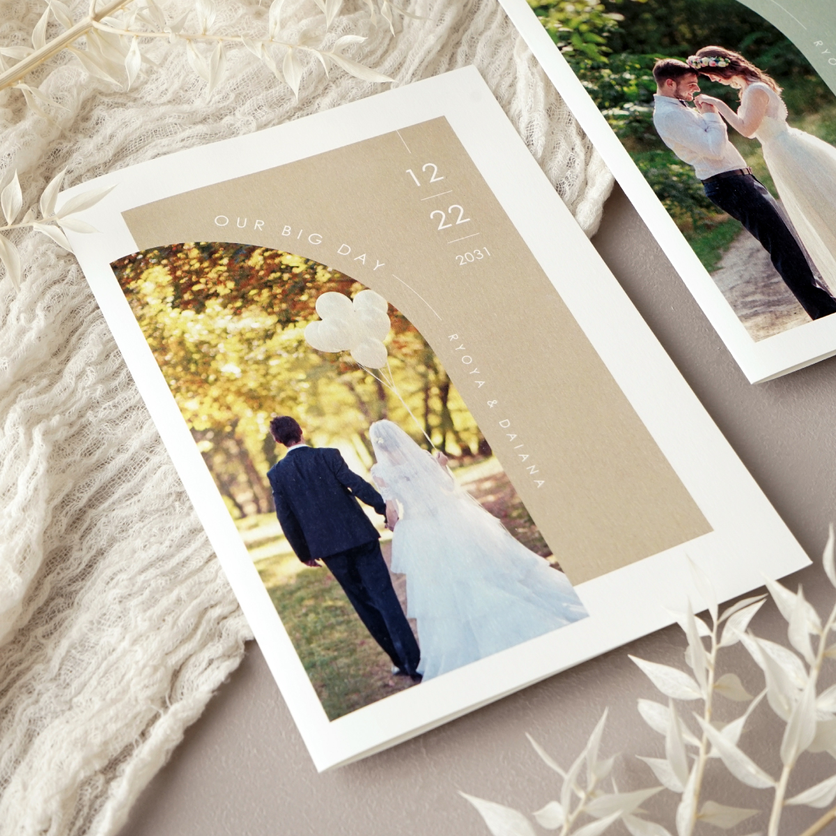 紙質もよく、デザインも注文も楽にできました ちょうど1週間後に届きました 注文したミモザイエローは 茶色に近い感じの色味で 秋婚にぴったりです!