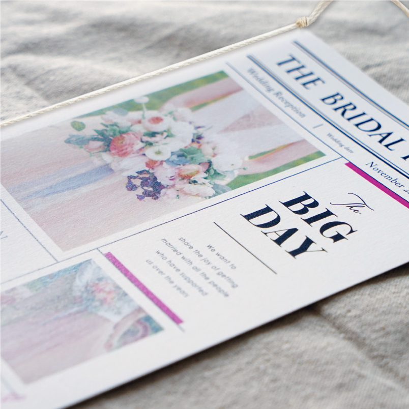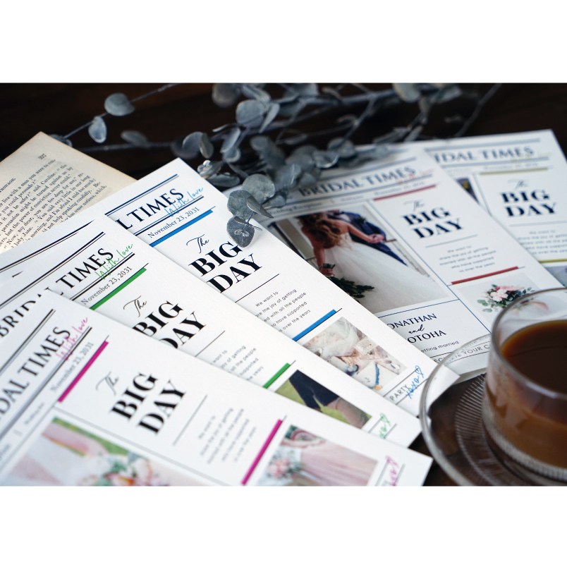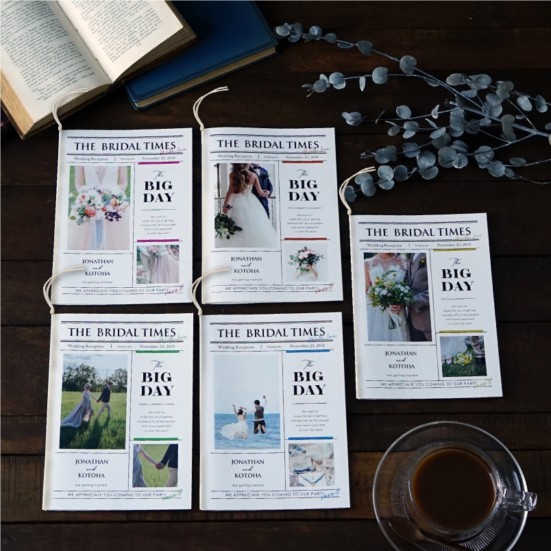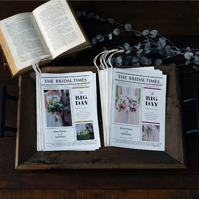 席次表には本日のプログラムや席のご案内を載せて、プロフィールブックにはおふたりのプロフィールをたくさんの写真とともに載せて使い分けるのもオススメです。
