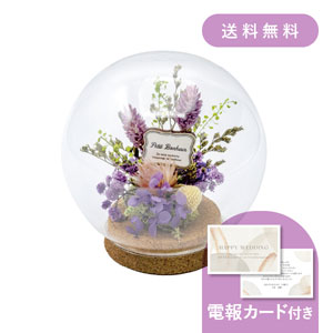 【送料無料】結婚式電報・祝電[ガラスドームアレンジ パープル]