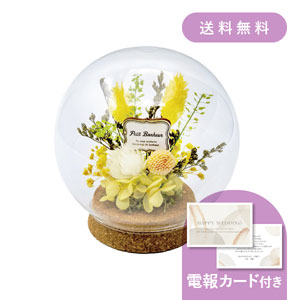 【送料無料】結婚式電報・祝電[ガラスドームアレンジ イエロー]