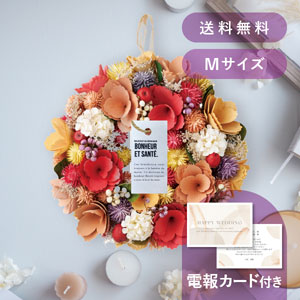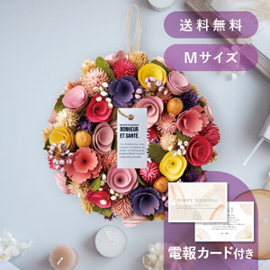【送料無料】結婚式電報・祝電[カラフルリースM ピンク]