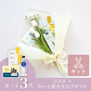 コスメブーケキット【3点】選べるコスメ&カタログ ホワイトチューリップ