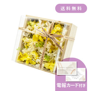 【送料無料】結婚式電報・祝電[ 桐箱アレンジ イエロー]