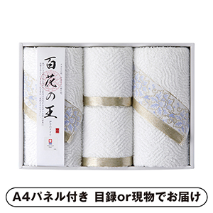 今治タオル 百花の王 バスタオル1P・フェイスタオル1P・ウォッシュタオル1P【パネル・目録付】