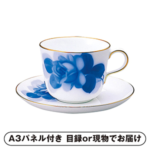 大倉陶園 ブルーローズ モーニング碗皿【パネル・目録付】