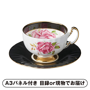 エインズレイ ローザセンティフォーリア ティーカップ&ソーサー(ブラック)【パネル・目録付】