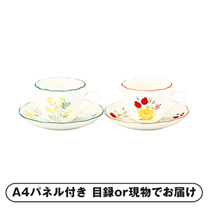 日比谷花壇 ペアカップ&ソーサーセット(ミモザ・チューリップ)【パネル・目録付】