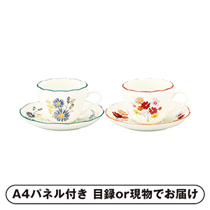 日比谷花壇 ペアカップ&ソーサーセット(孔雀草・コスモス)【パネル・目録付】