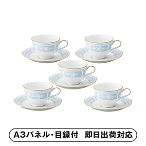 ノリタケ レースウッドゴールド ティーコーヒー碗皿5客セット【パネル・目録付】
