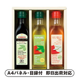 日本オリーブ 赤屋根 オリーブオイルバラエティセット【パネル・目録付】
