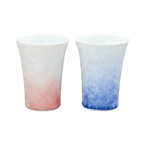 京焼・清水焼 花結晶(白地青赤) ペアフリーカップ