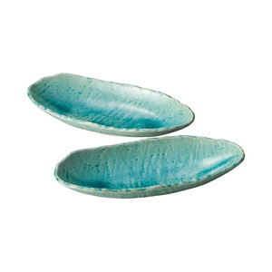 瀬戸焼 ブルー貫入 舟型鉢2P